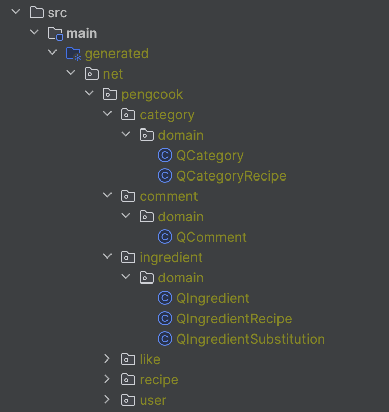 위 설정을 한 후 JavaCompile을 실행해보면 Entity들에 해당되는 QClass들이 지정된 경로에 생성된 것을 알 수 있다.